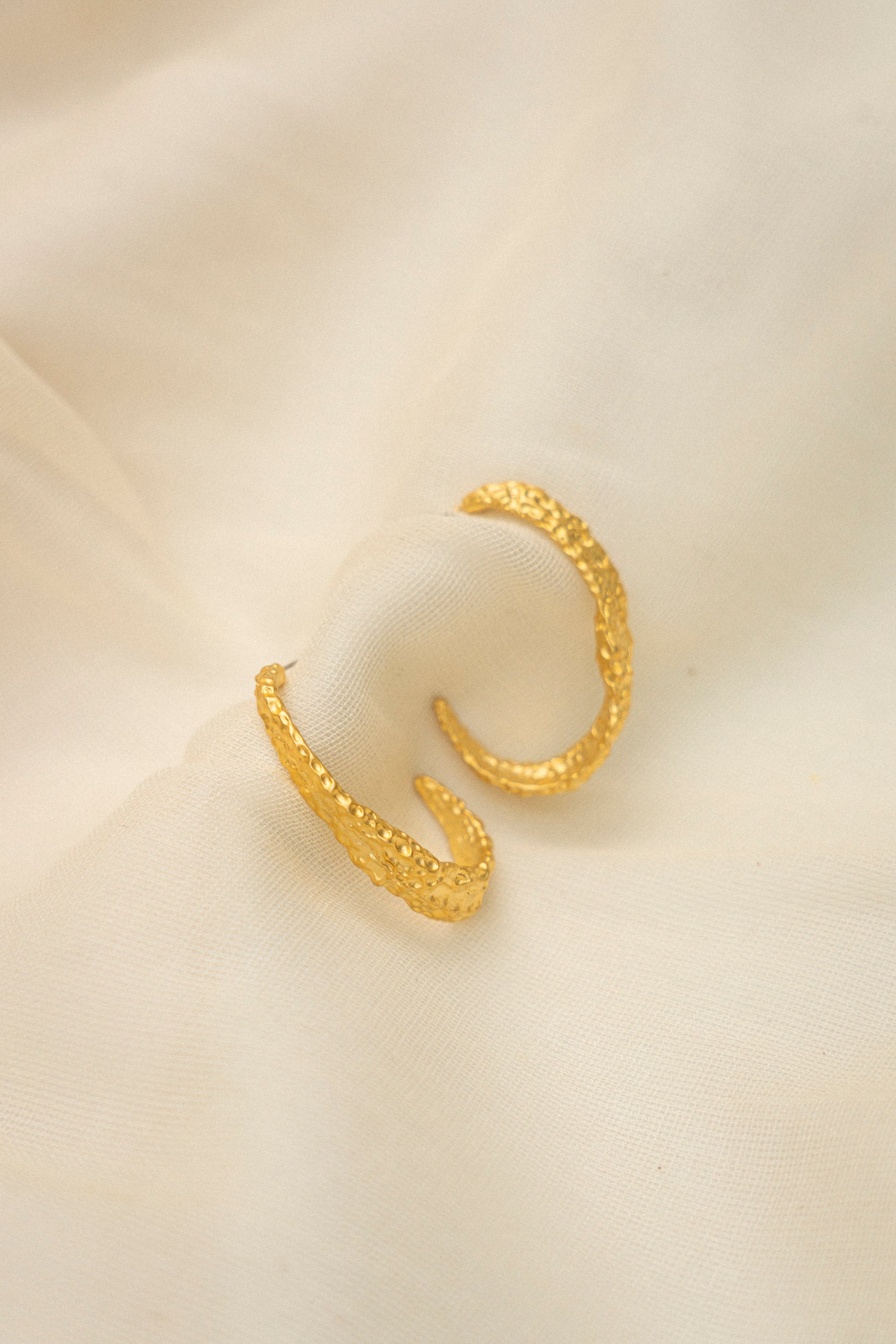Make a bold statement with these exquisite gold plated sculptural earrings crafted with an artist touch, their organic, flowing design exudes elegance and sophistication.