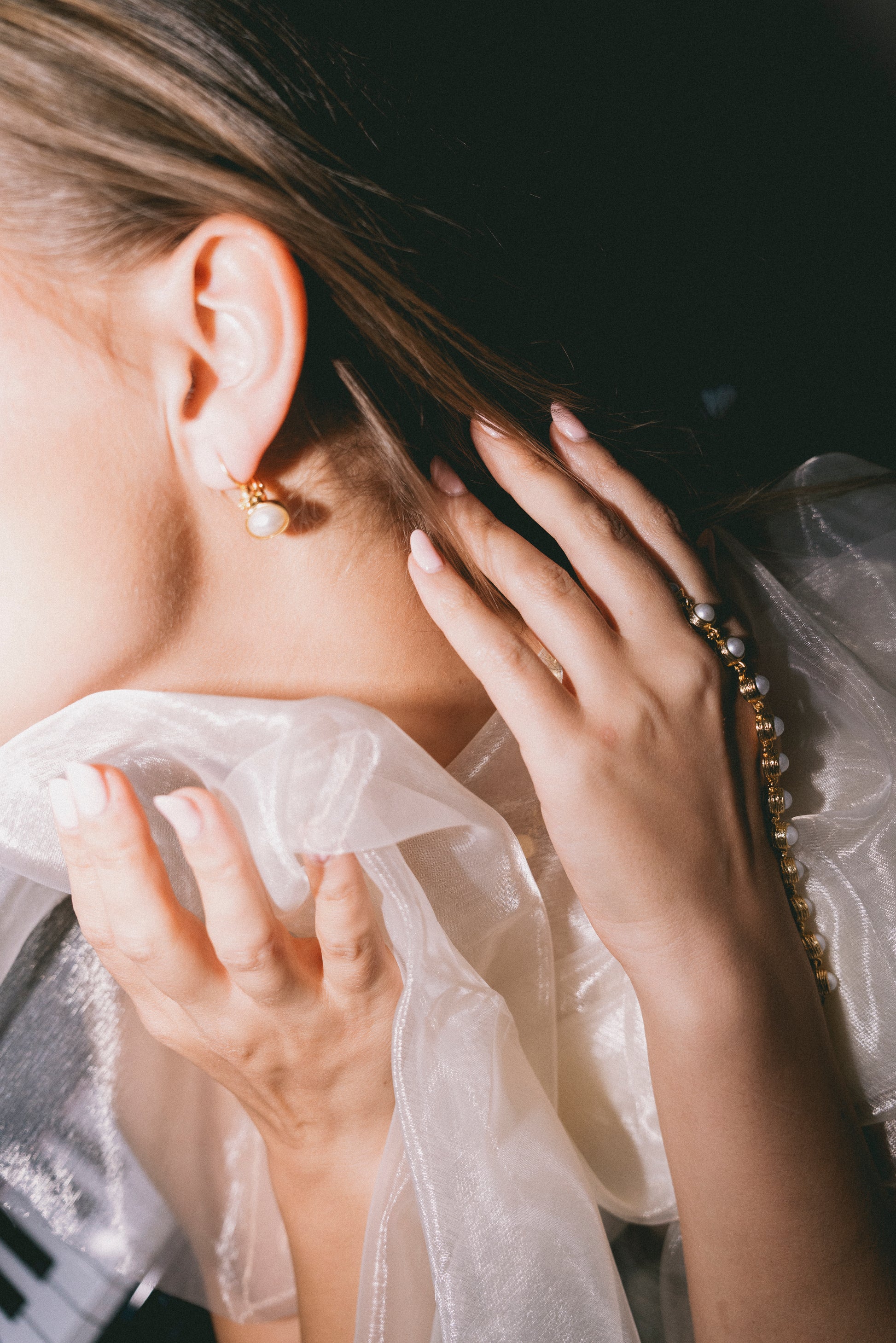 Elevate your look with these exquisite gold plated earrings. Featuring a textured oval hoop stud that gracefully anchors a delicate bar and lustrous round pearl drop, these earrings blend modern elegance with timeless charm. The refined silhouette and radiant finish make them the perfect accessory for sophisticated occasions, from evening soirées to elegant gatherings.