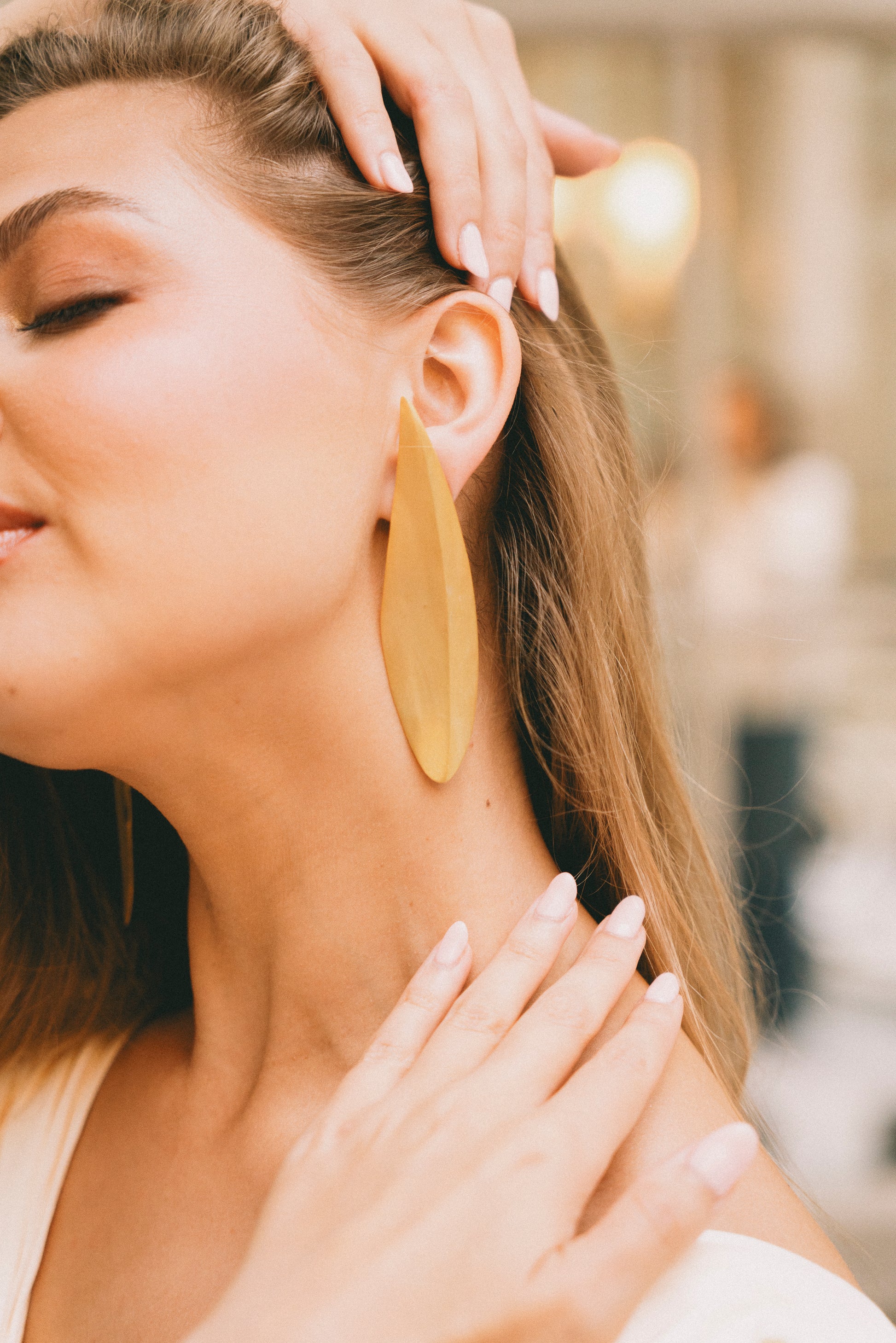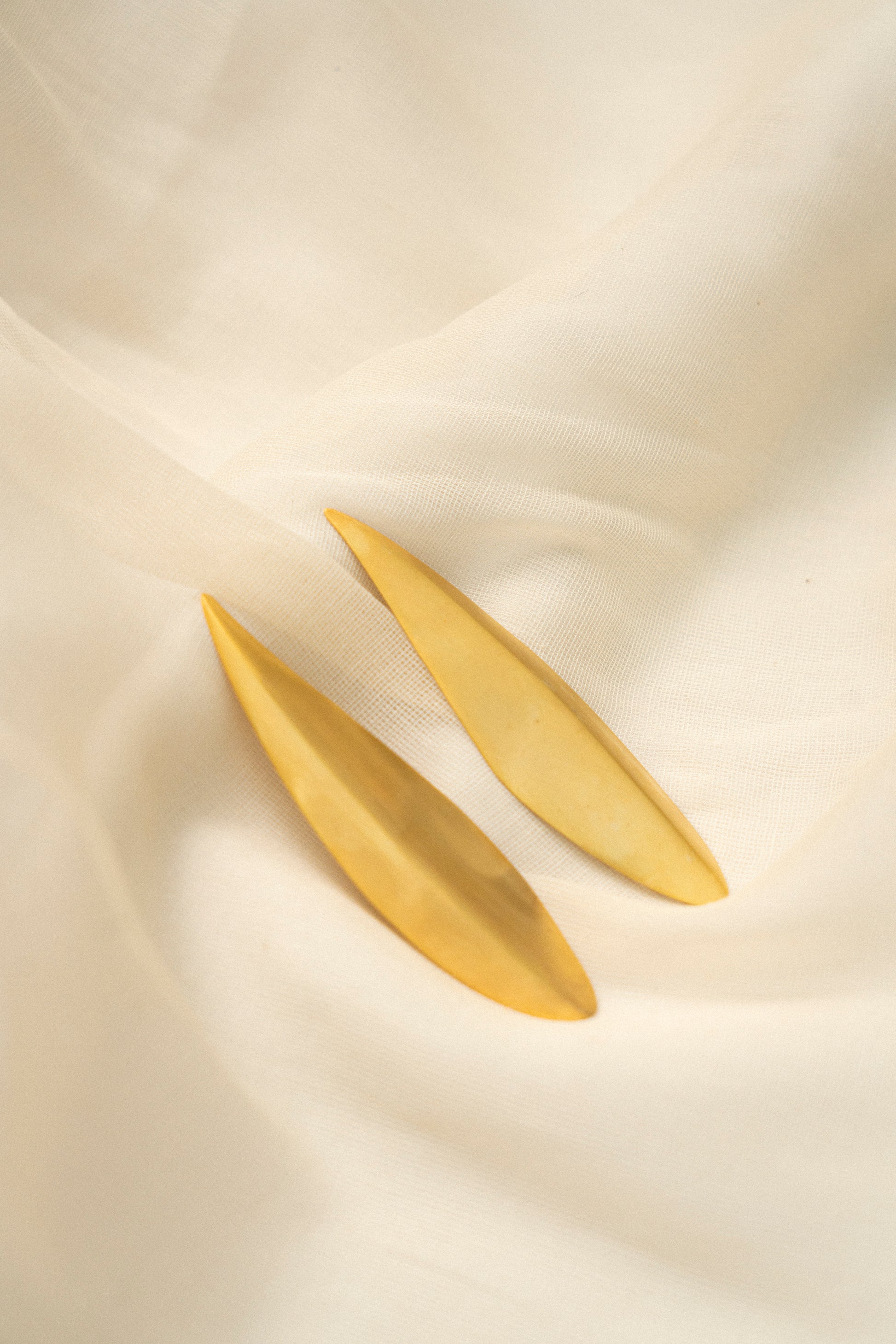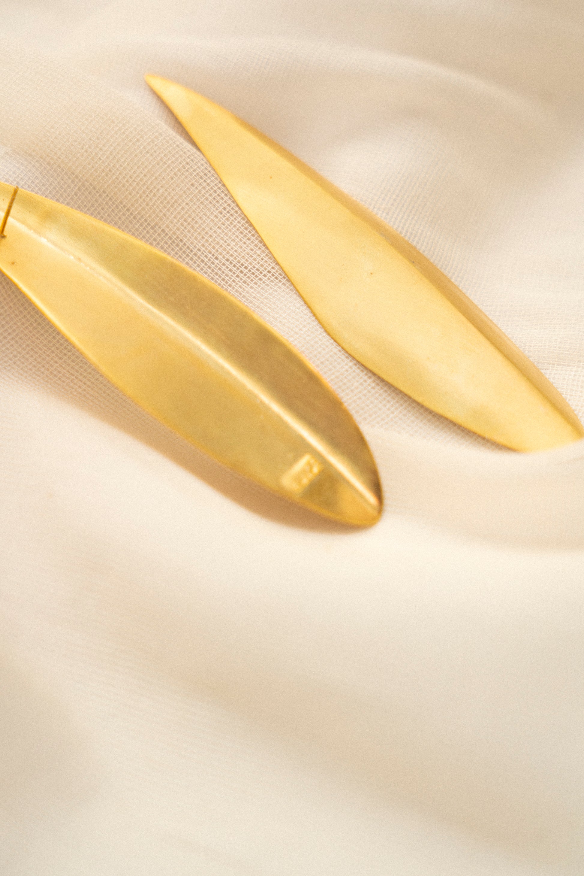 Handcrafted in the UK, the Solenne earring is a poetic ode to the elegance of nature. Inspired by the delicate form of a fallen leaf, its silhouette is soft yet sculptural gently tapering to a point with a natural, effortless curve. Formed by hand and finished in rich 22KT gold, Solenne celebrates refined craftsmanship. The matte surface gives a subtle glow, catching light with quiet radiance, while the organic shape evokes femininity and movement. Designed for those who appreciate understated beauty, Solenne is more than an accessory it is a tribute to the calm, golden moments found in nature.