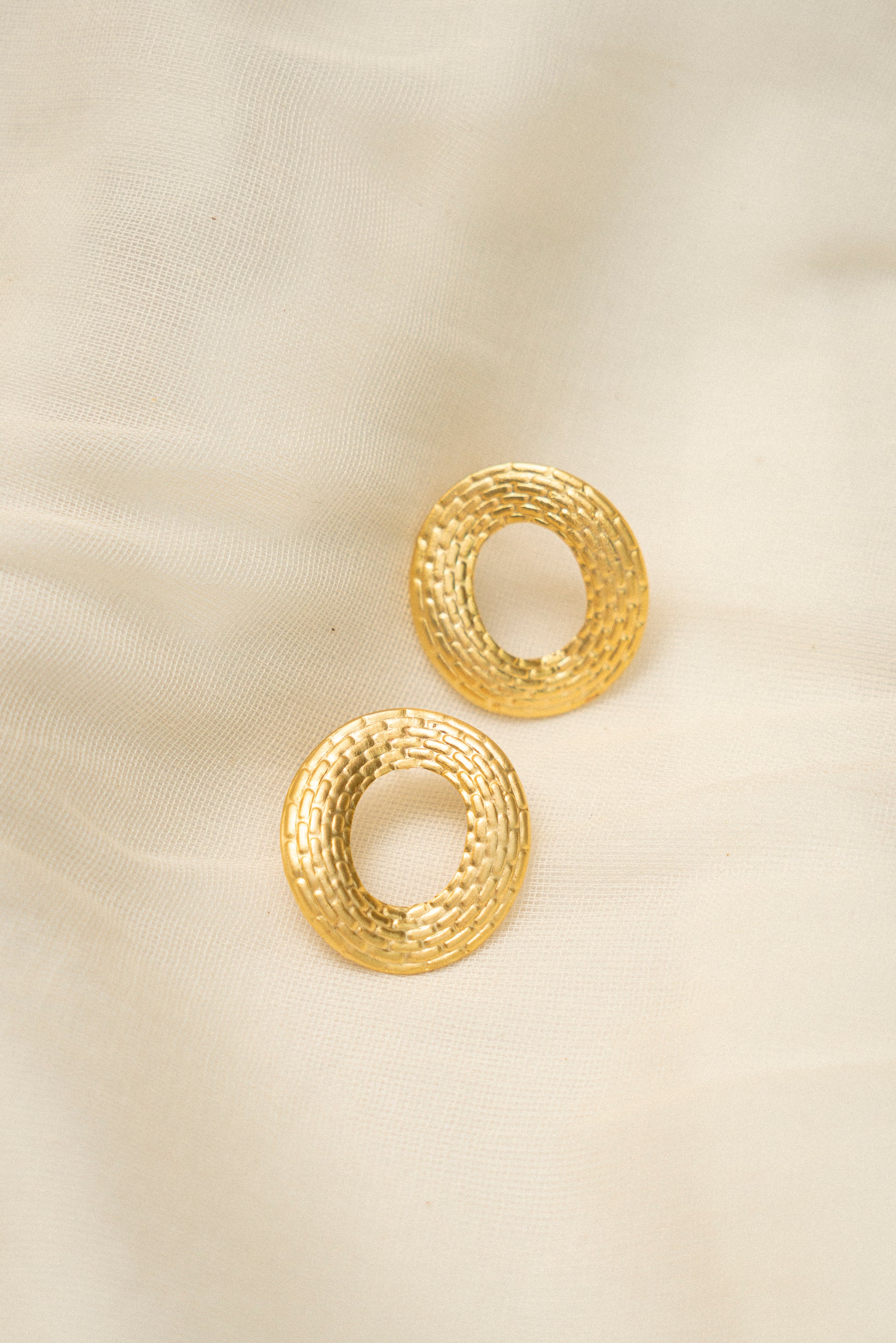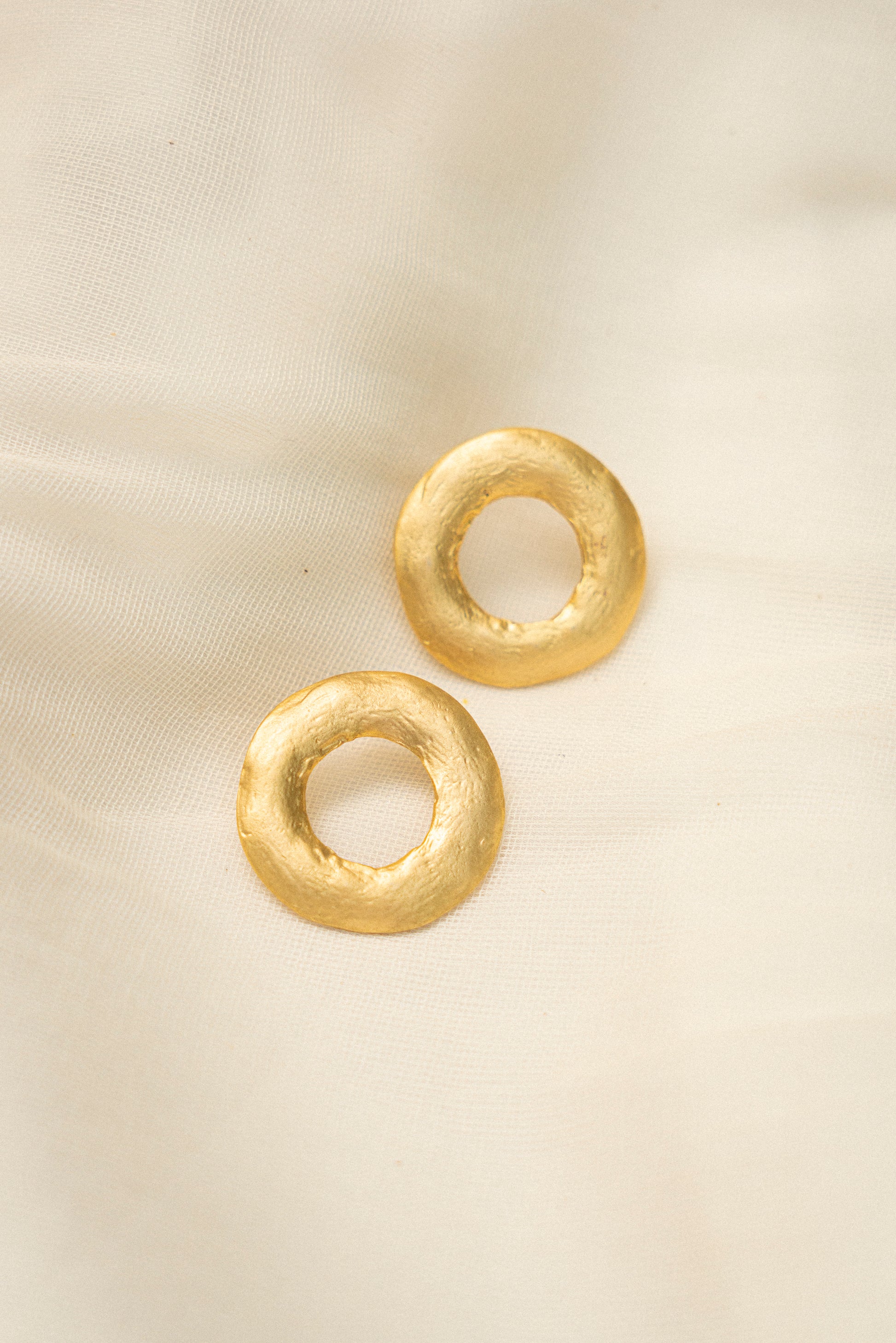 Featuring a hammered circular design that echoes the textures of the natural world, these earrings are reminiscent of timeless historical jewellery. Blending classical elegance with a contemporary aesthetic, they evoke the essence of feminine and artistic expression.